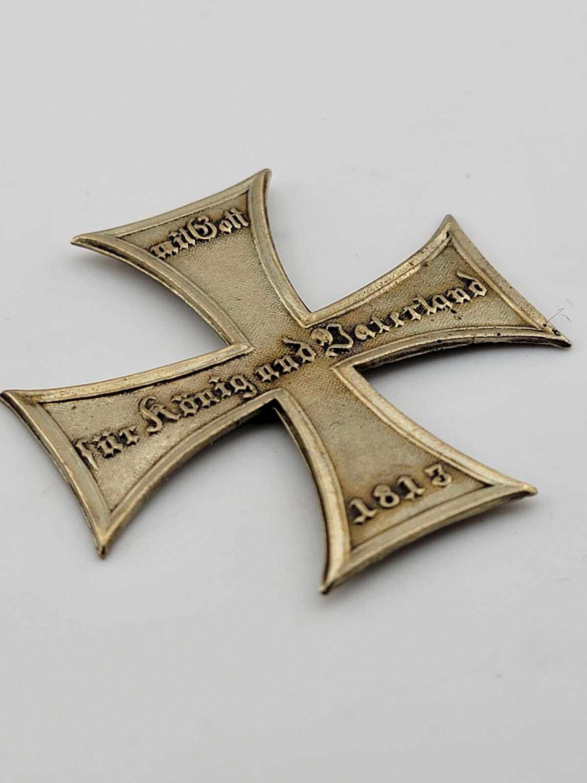 xThis unique Landwehrkreuz to Landwehr Chako, circa 1880, gilded metal cross is a beautiful addition to any collection. The intricate details on the cross make it a true treasure for those who appreciate handmade religious items. The cross was made in Germany and is crafted from brass, adding to its durability and longevity.