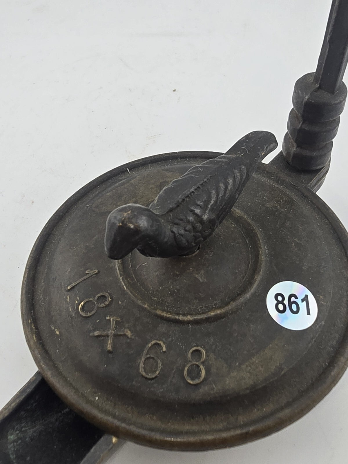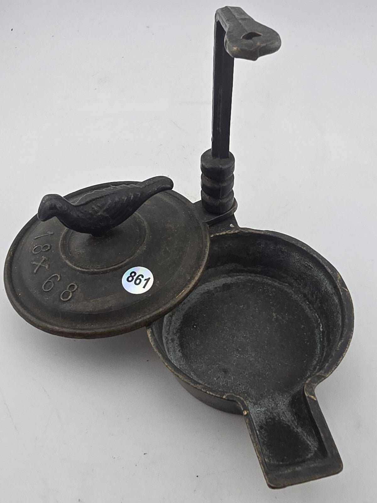 xThis antique oil lamp is a stunning piece of history. Crafted in the 19th century, it features a beautiful Roman bronze design that is sure to catch the eye of any collector. The lamp is dated 1868 and has a stunning Americana style that adds to its charm.