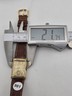 xThe Antique 1941 Bulova President 10k GF Wristwatch from the Phil Collins Estate features a classic design with a gold filled case and brown leather band. This luxury timepiece has a manual mechanical movement and Arabic numeral indices, giving it a timeless elegance. The watch is a rectangle shape with a gold dial color and Swiss movement, making it a valuable addition to any watch collection.