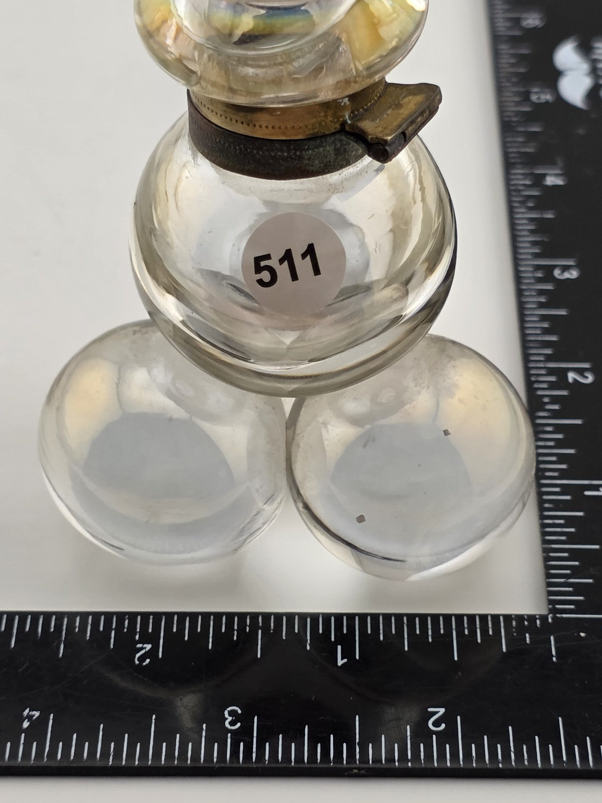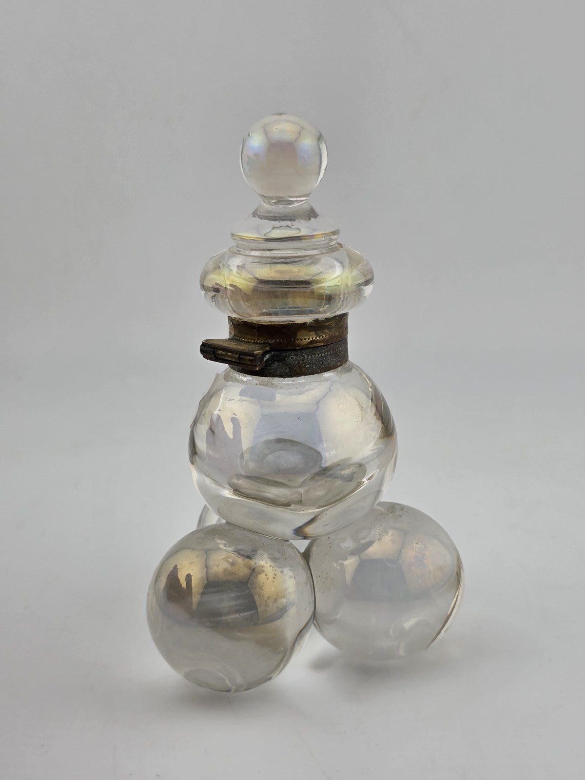 xThis antique 19th-century iridescent glass soap bubble inkwell is a rare and exquisite piece of Victorian Bohemian glassware. Made by the renowned Harrach company, this unique item combines intricate craftsmanship with a luxurious design. The intricate soap bubble shape and iridescent finish make it a standout collectible for those interested in historical and elegant pen and writing instrument accessories. Its beauty and rarity make it a desirable addition to any collection.