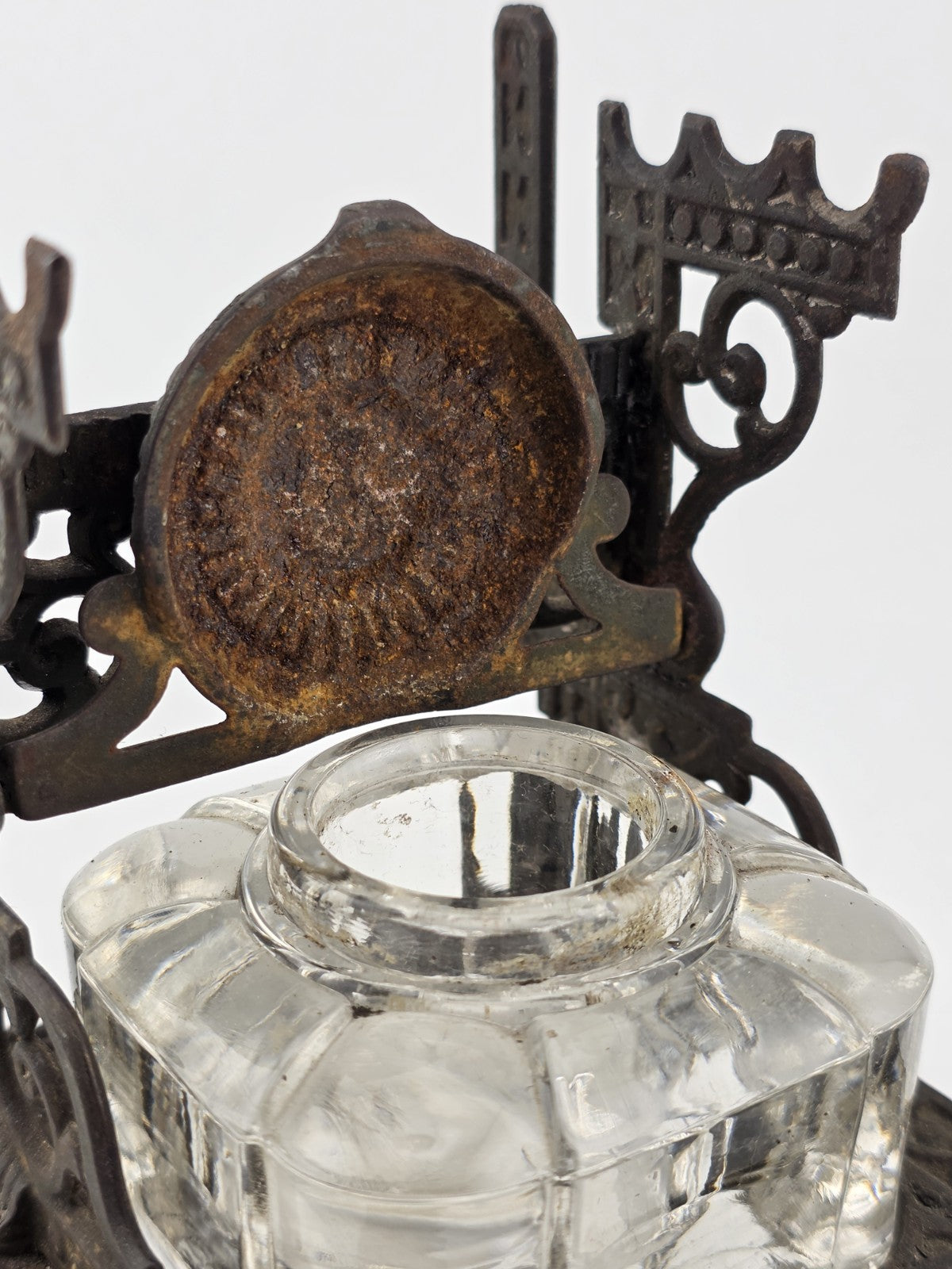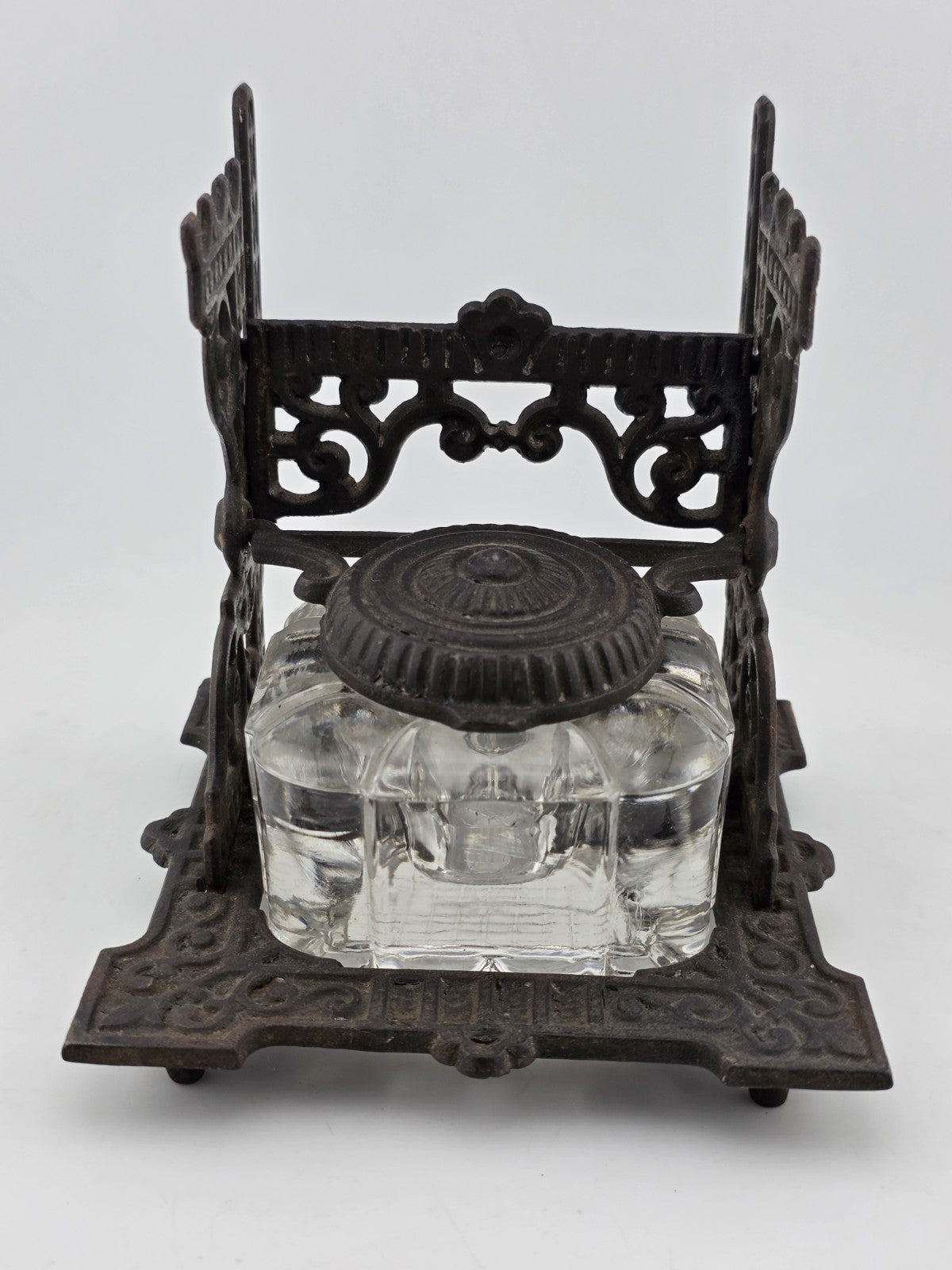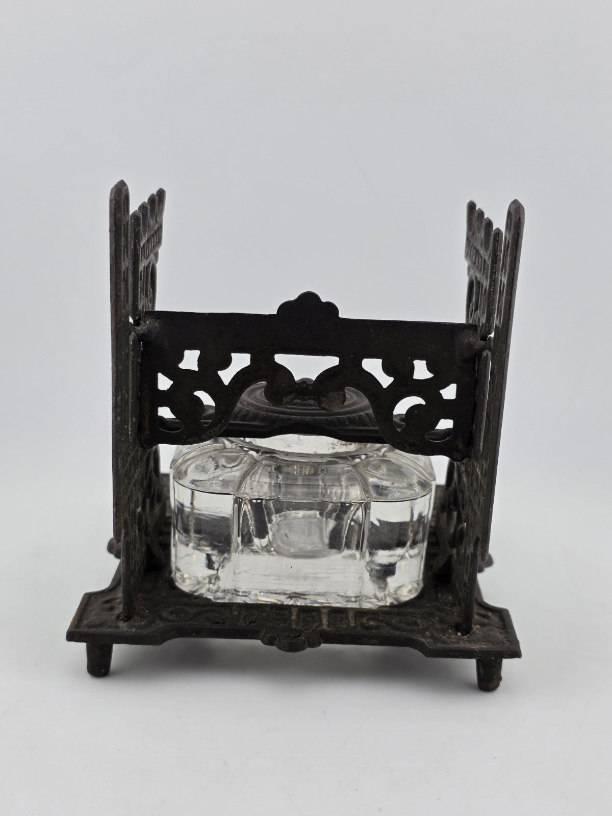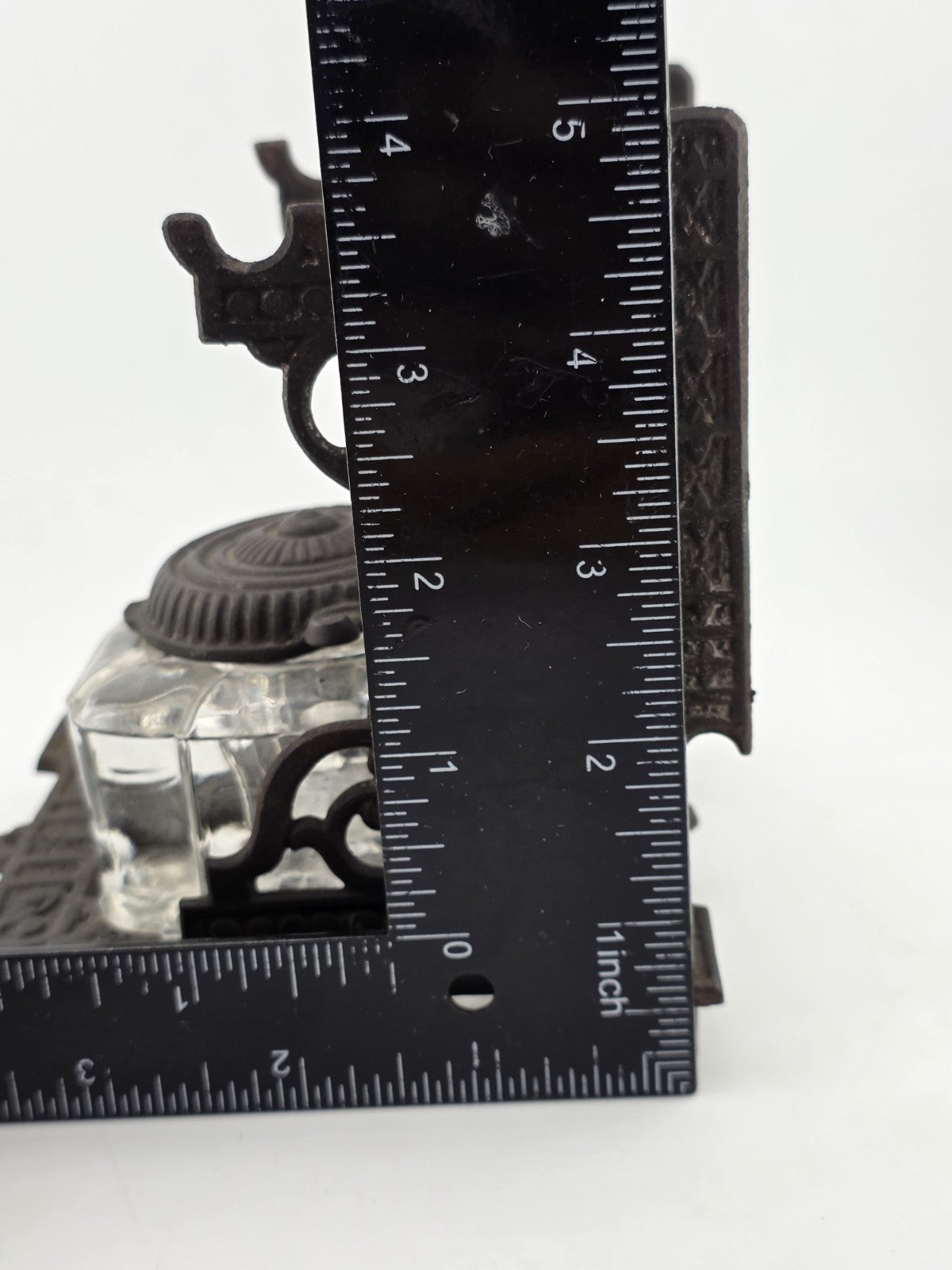 xThe Antique TATUM'S Postal Ink Stand is a vintage collectible made of cast iron, featuring a glass inkwell, quill, and envelope holder. This unique piece originates from the United States and is designed with a blue ink color. The intricate details and historical charm make it a desirable addition for collectors of antique writing instruments. The fact that it has not been modified adds to its authenticity and authenticity, making it a truly special and sought-after item for those with a passion for vintage artifacts.