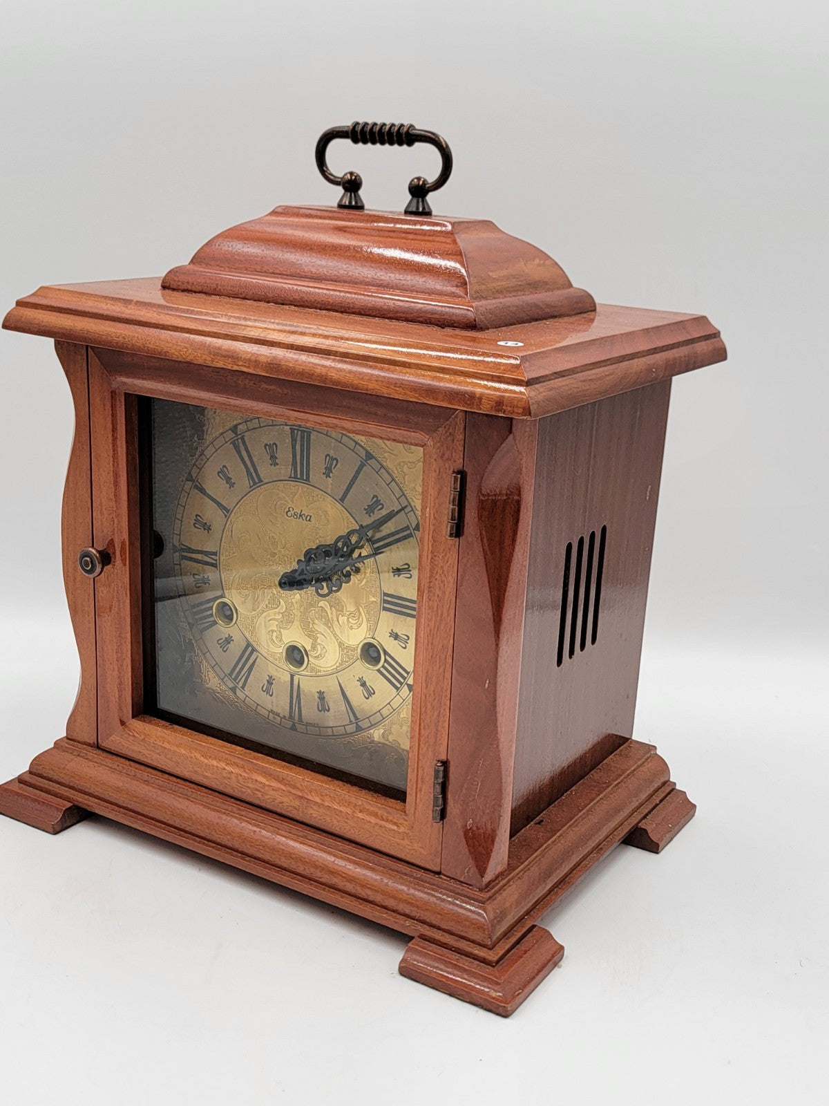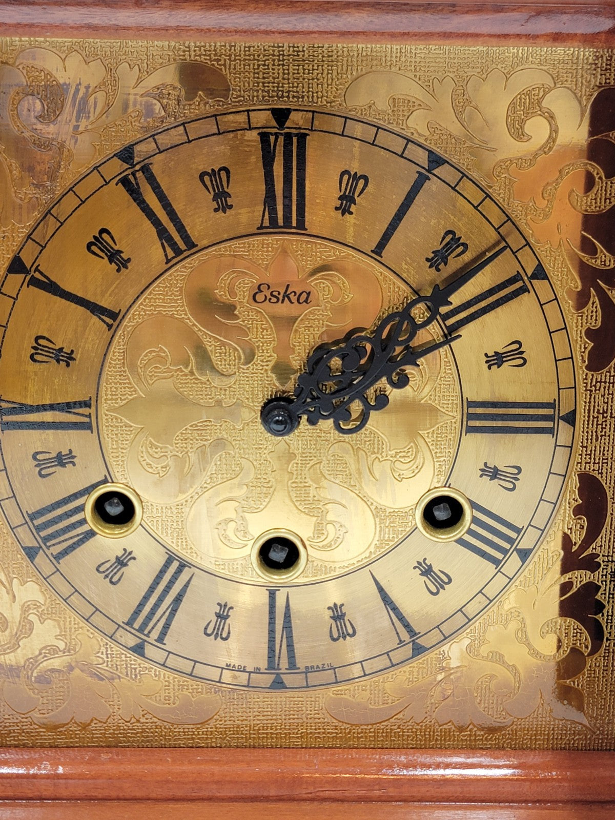 BEAUTIFUL ESKA WIND UP ESKA SHELF MANTEL CLOCK BRAZIL WESTMINSTER CHIMES. As-is.