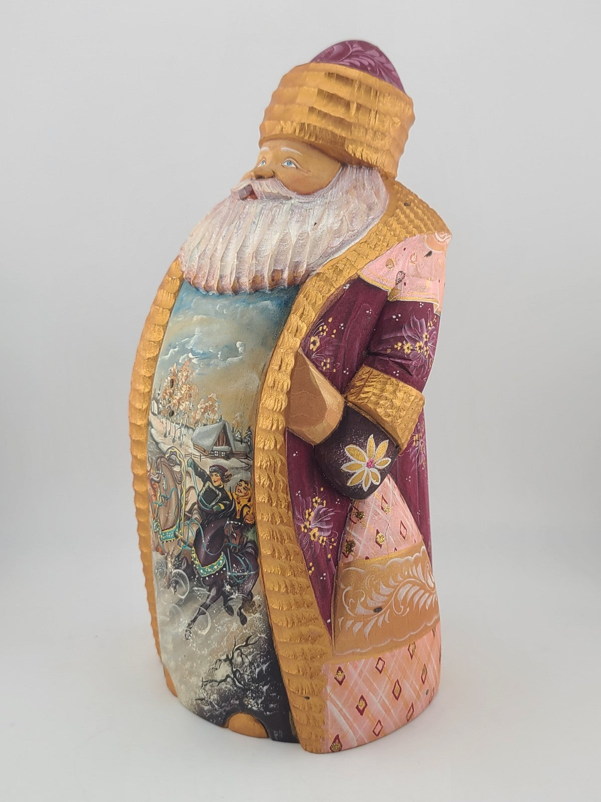 xThe Ded Moroz Russian Hand Carved Wooden Santa Figurine from Sergiyev Posad is a unique and charming collectible piece that showcases intricate carvings and a vibrant multicolor paint finish. This Santa figurine, manufactured in 1985, exudes a Russian style and seasonal theme, perfect for Christmas enthusiasts of all ages. Crafted from wood and featuring an all-over pattern, this figurine is a delightful addition to any holiday decor collection.