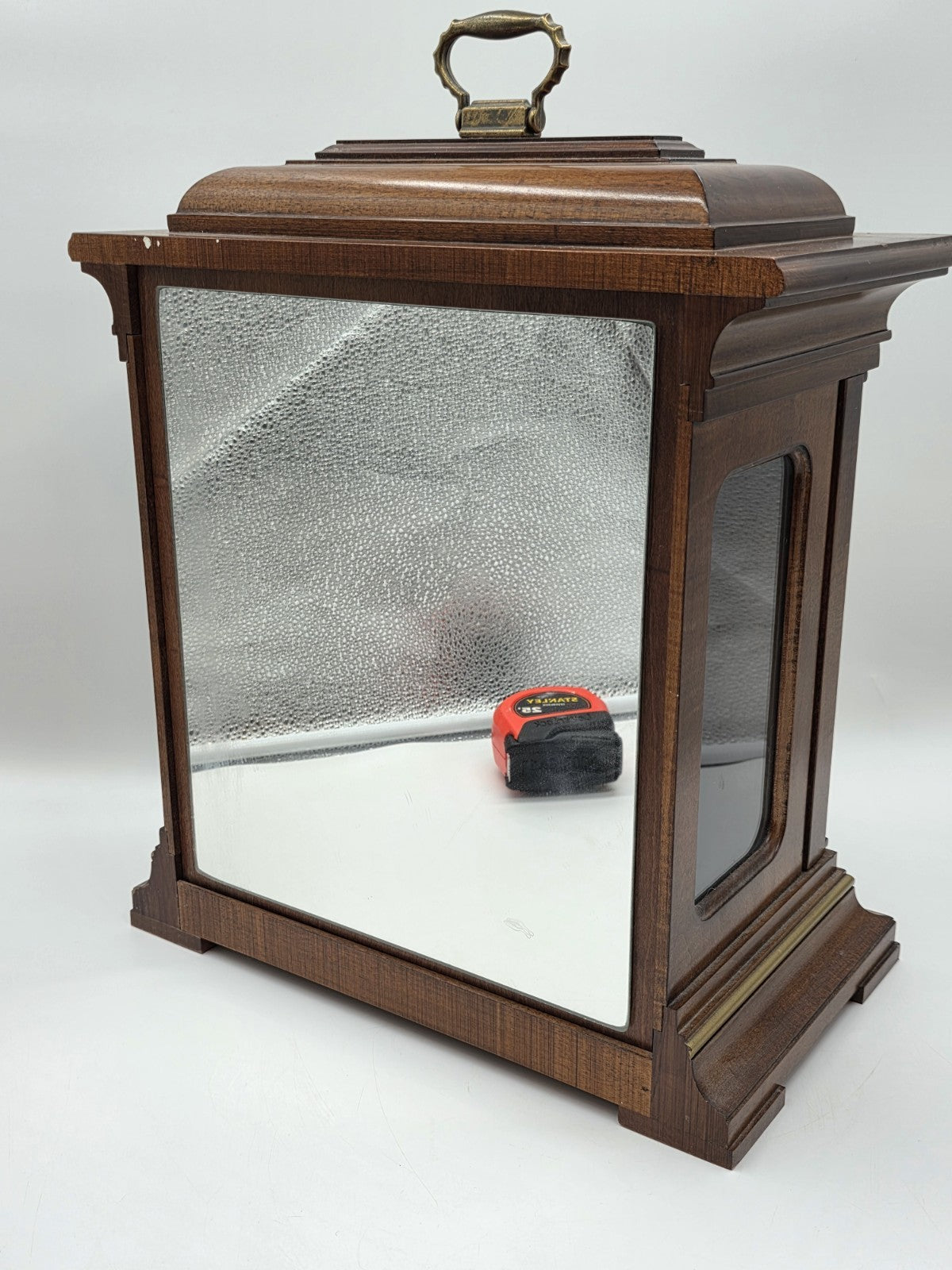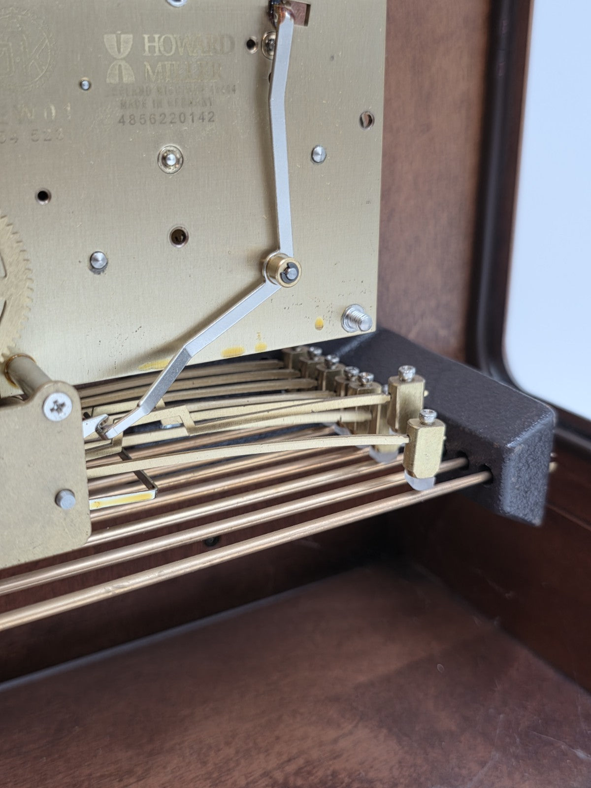 xThe Howard Miller Thomas Tompion Mantel Clock 354-523 in Windsor Cherry Triple Chime is a vintage retro-style clock manufactured in 2003. This rectangular clock features Arabic numerals and a Whittington chime sequence, adding a charming touch to any living room or dining room. The clock is made of wood with a cherry finish, reflecting a classic and timeless design that complements various decor styles. Made by the renowned brand Howard Miller in the United States, this mantel clock is a beautiful addition to any space looking for a unique and stylish piece.