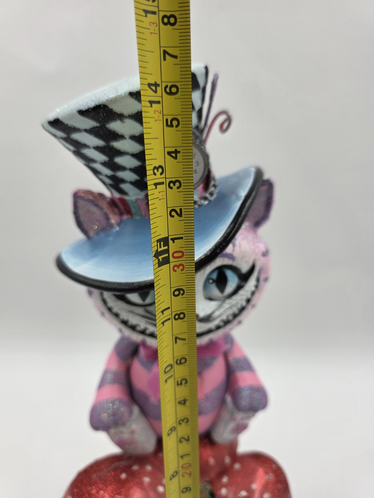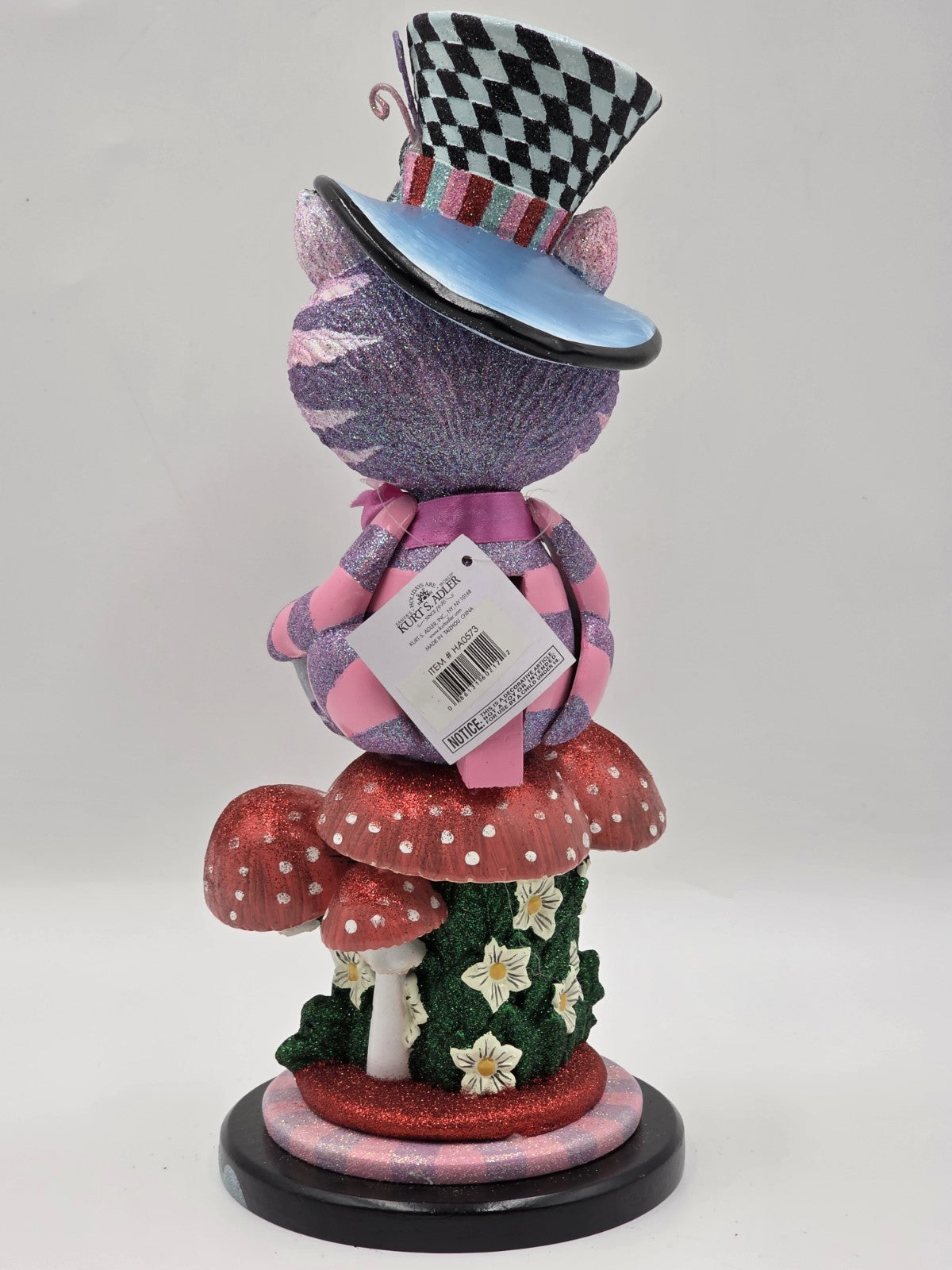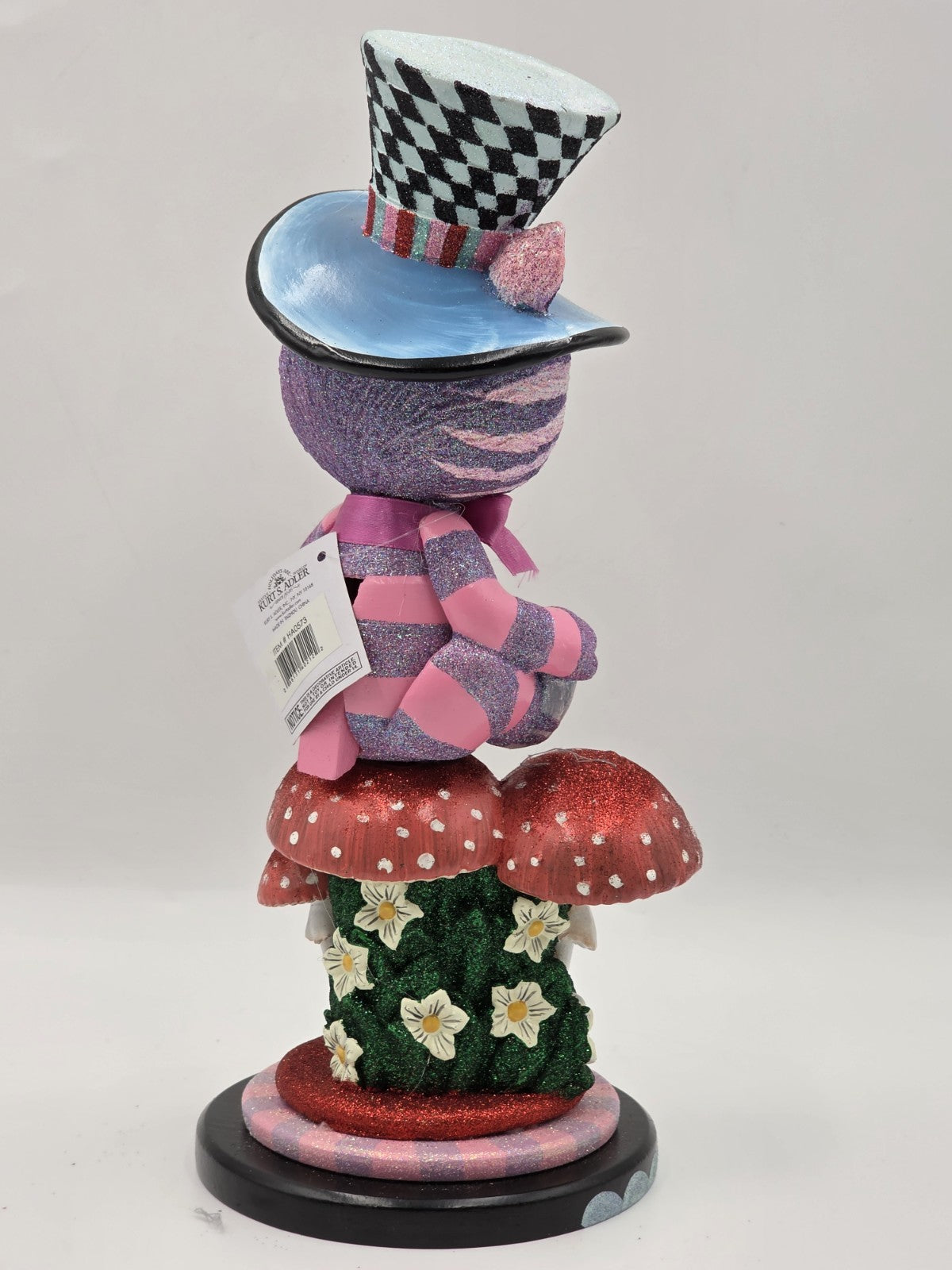 xThe Kurt S. Adler HA0573 Hollywood Cheshire Cat Nutcracker is a unique and colorful decoration perfect for the holiday season. With its 15" size and multi-color design, this nutcracker features a cat shape inspired by the iconic Cheshire Cat from Alice in Wonderland. The Hollywood theme adds a touch of glamour and whimsy to your Christmas decor, making it a standout piece in your home.
