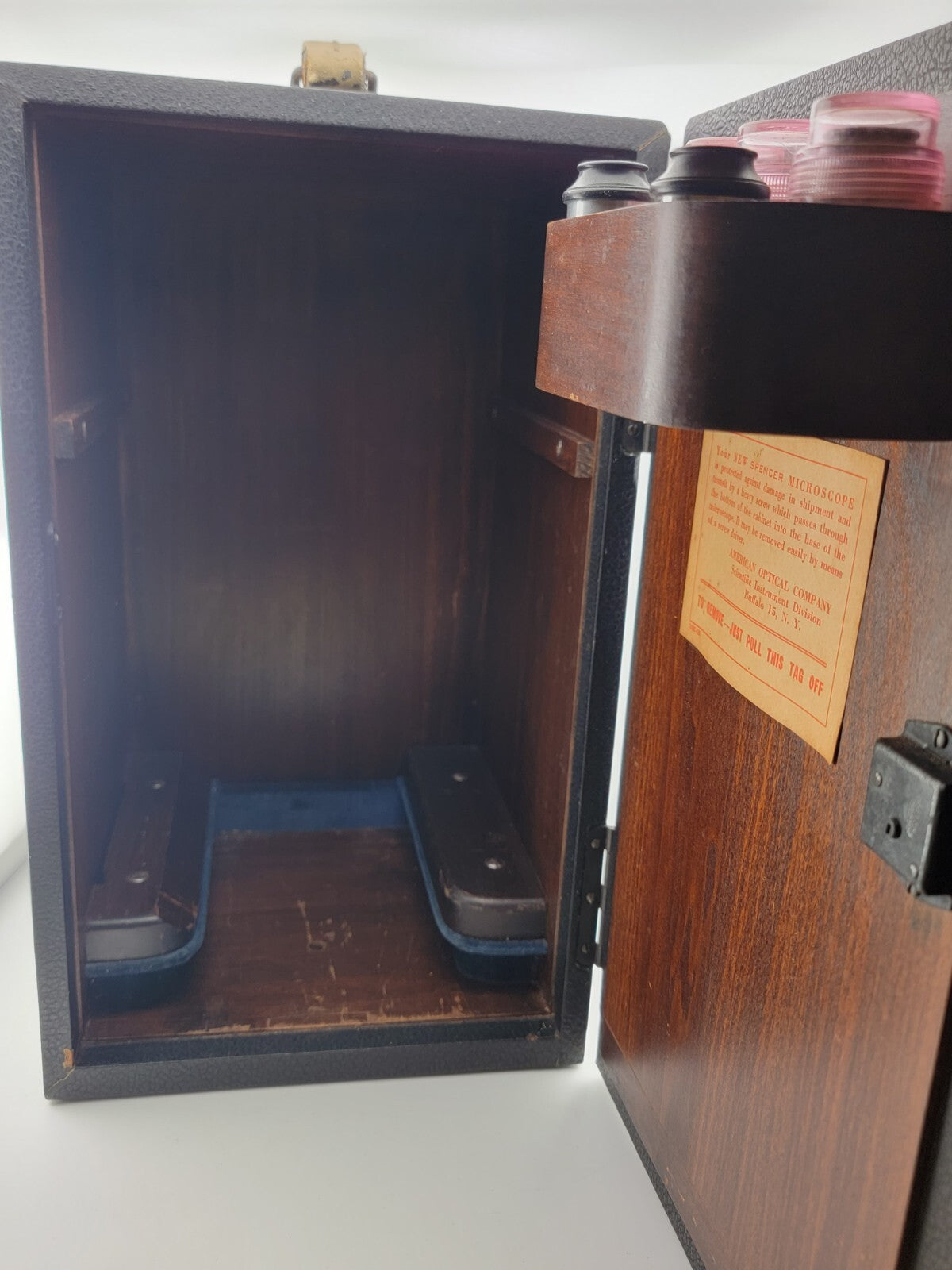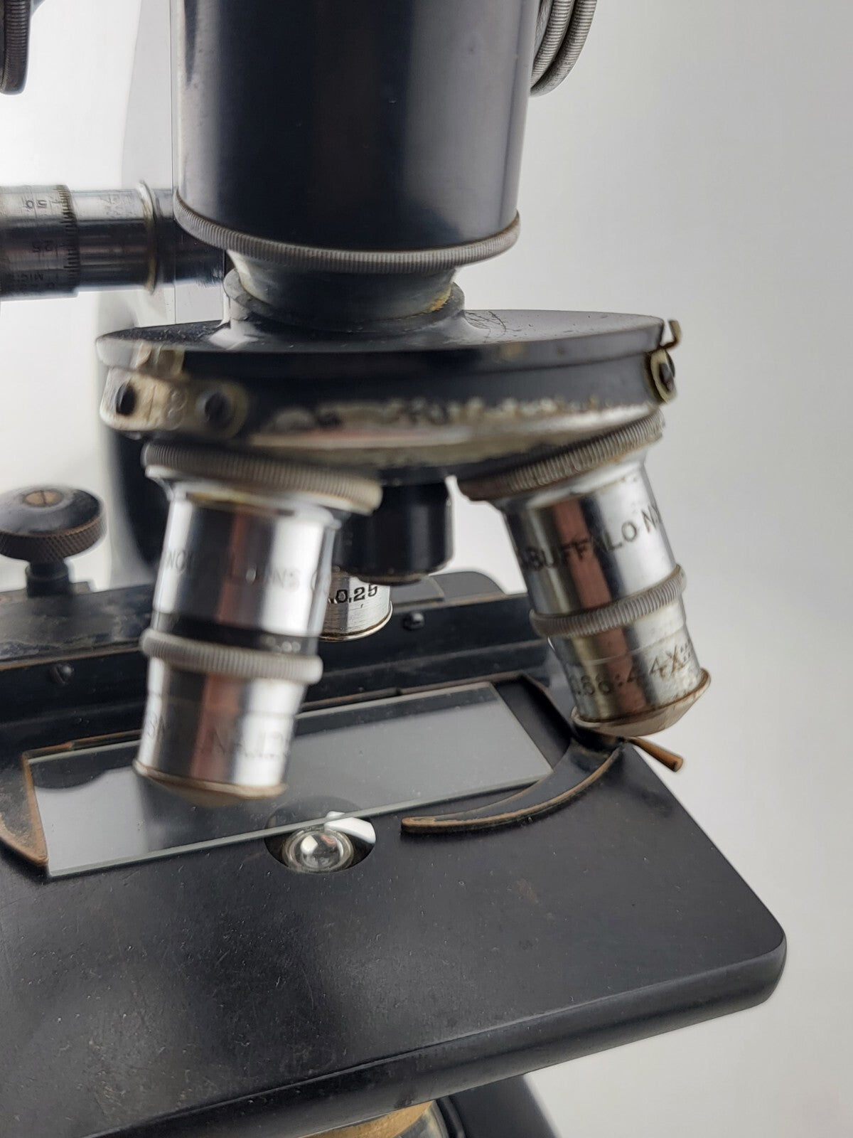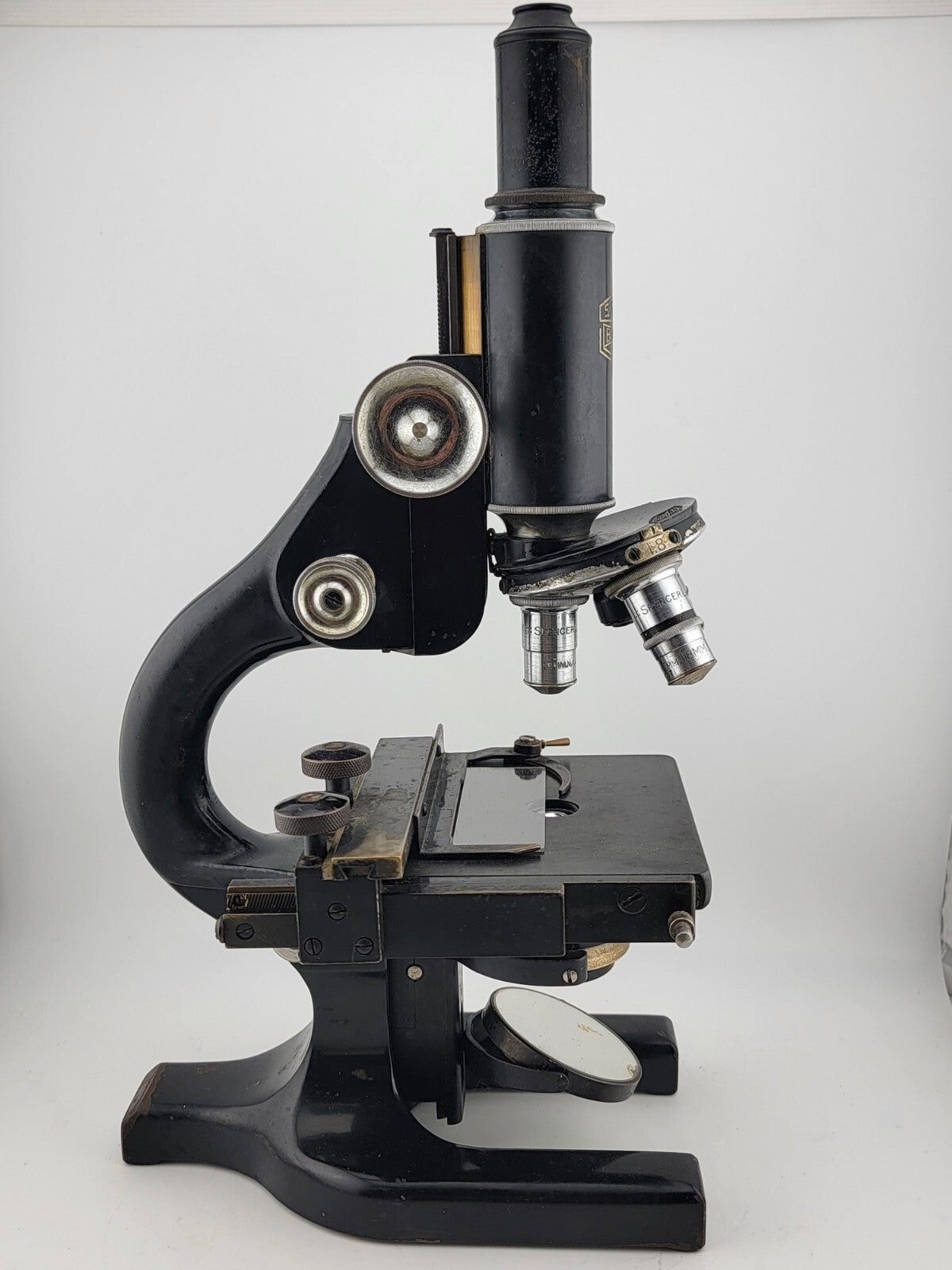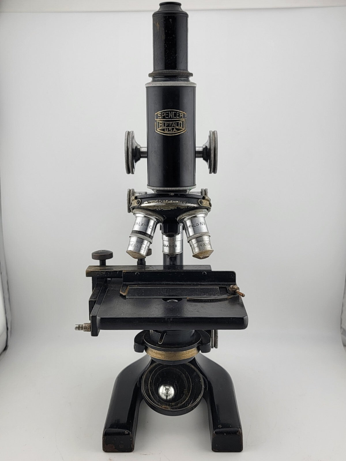 xThis large vintage/antique Spencer Buffalo USA microscope is a collector's dream. With its sturdy case and multiple parts, it is a beautiful piece of scientific equipment that will add character to any collection. The microscope was manufactured in the United States and is a rare find for those interested in scientific instruments.