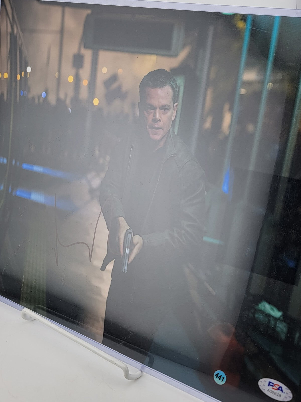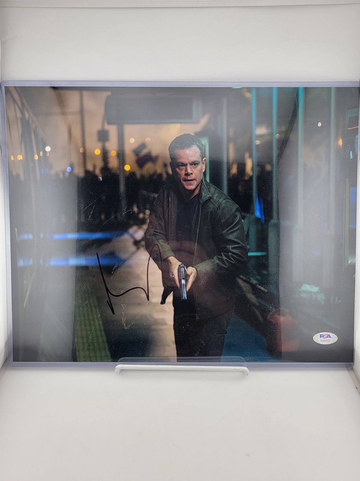 xThis 11x14 photograph featuring Matt Damon as "Jason Bourne" from the Bourne movie series is an original, authentic piece. The autograph has been authenticated by Professional Sports (PSA/DNA) and comes with a COA. The photograph makes a great addition to any movie lover's collection and is a must-have for fans of the Bourne franchise. It is perfect for display in a frame or to be stored as a treasured possession.