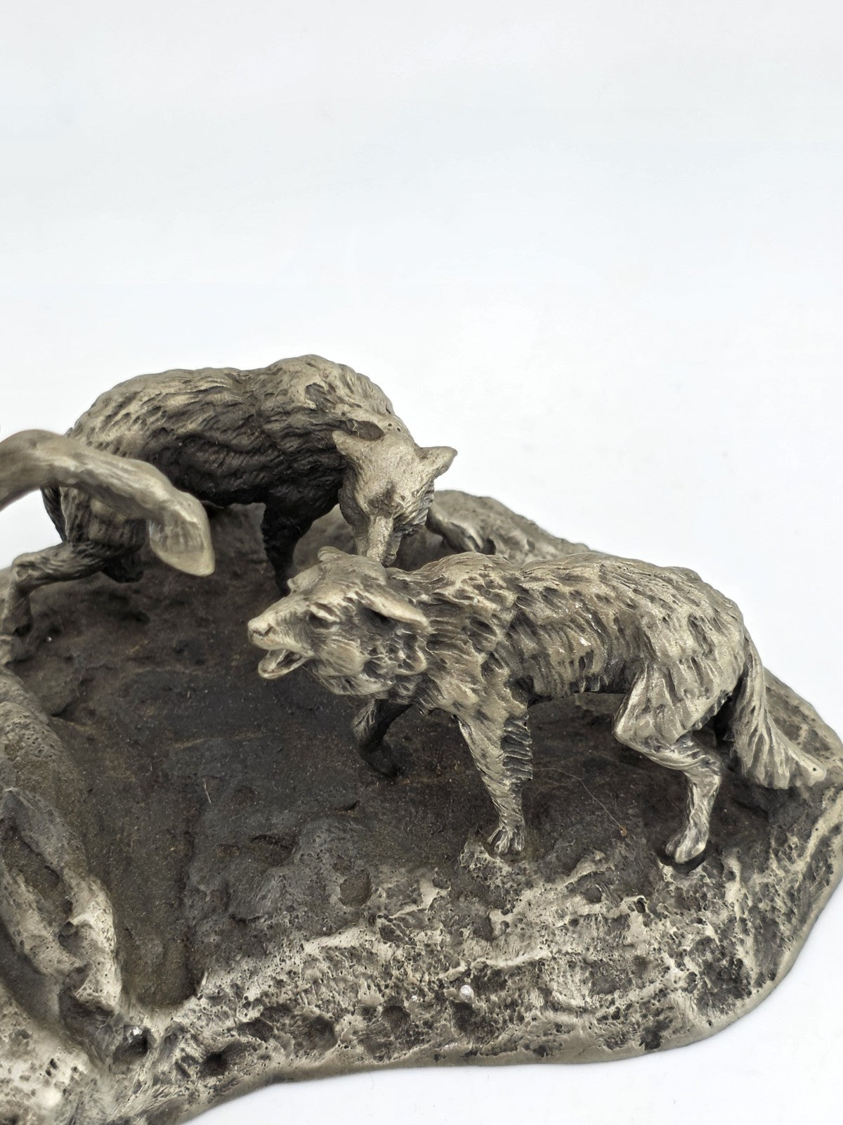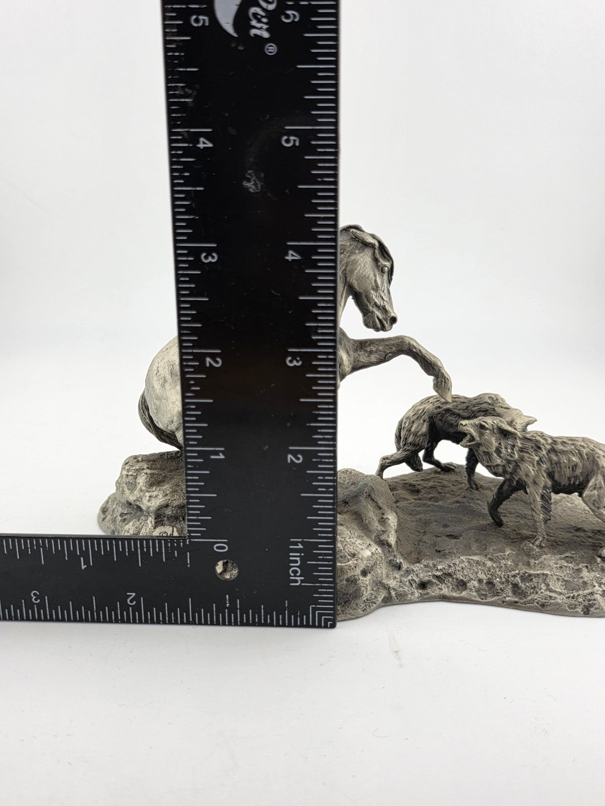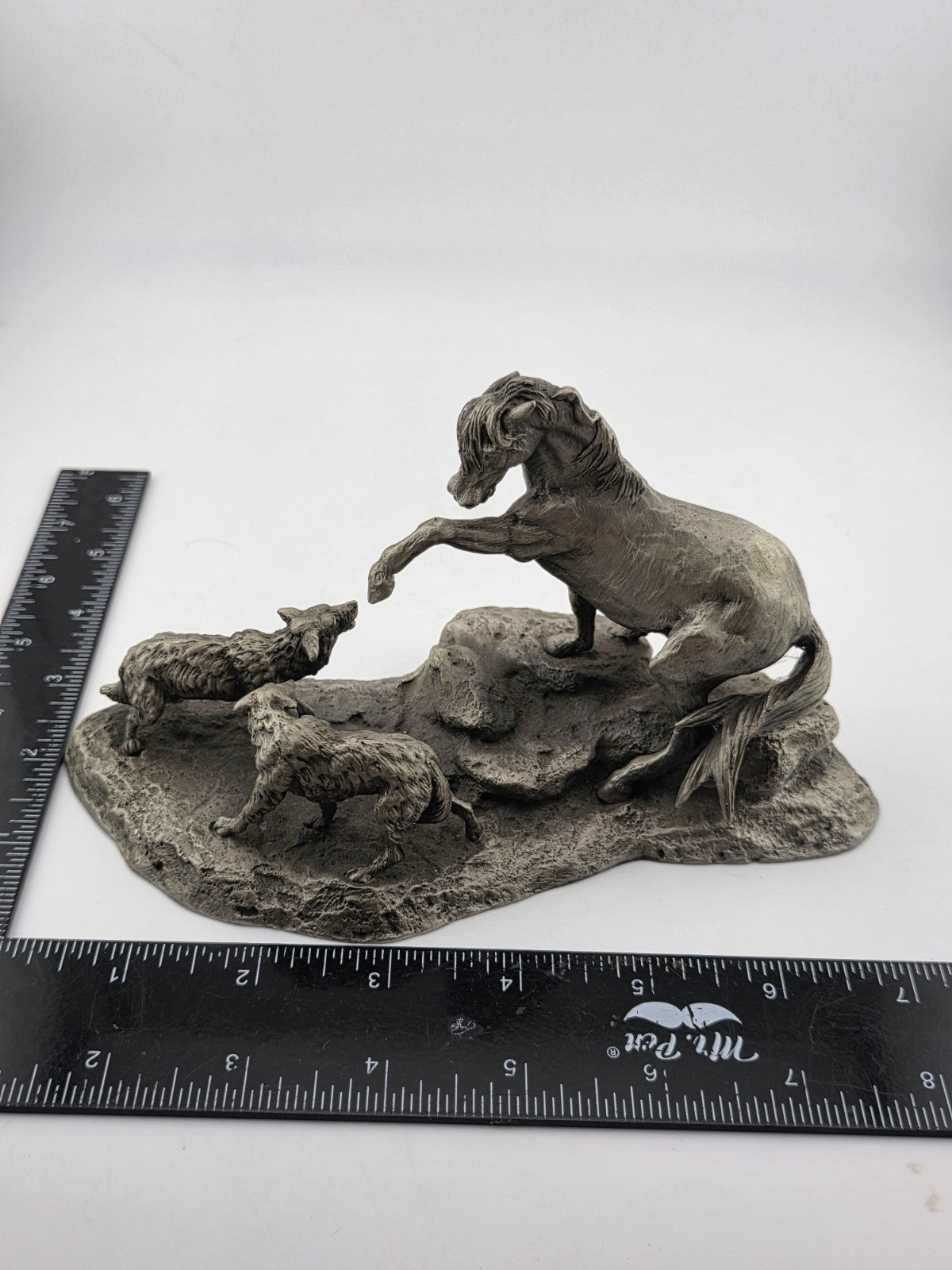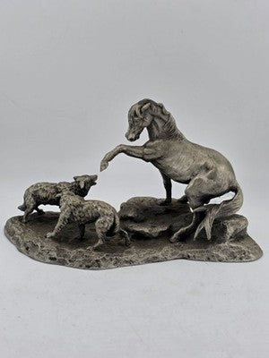 xThe Polland Franklin Mint Pewter Horse Mare Wolves Coyotes Wildlife Animals Figurine is a medium-sized sculptural collectible made of pewter. Featuring a wildlife pattern with a horse as the subject, this figurine is part of a collection of animals by the brand Franklin Mint from the 1970s. The silver color and animated theme make it suitable for all occasions, appealing to both teens, boys, adults, and kids who appreciate decorative sculptures and figurines. Made in the United States, this figurine captures the essence of nature and wildlife in a unique and detailed design.