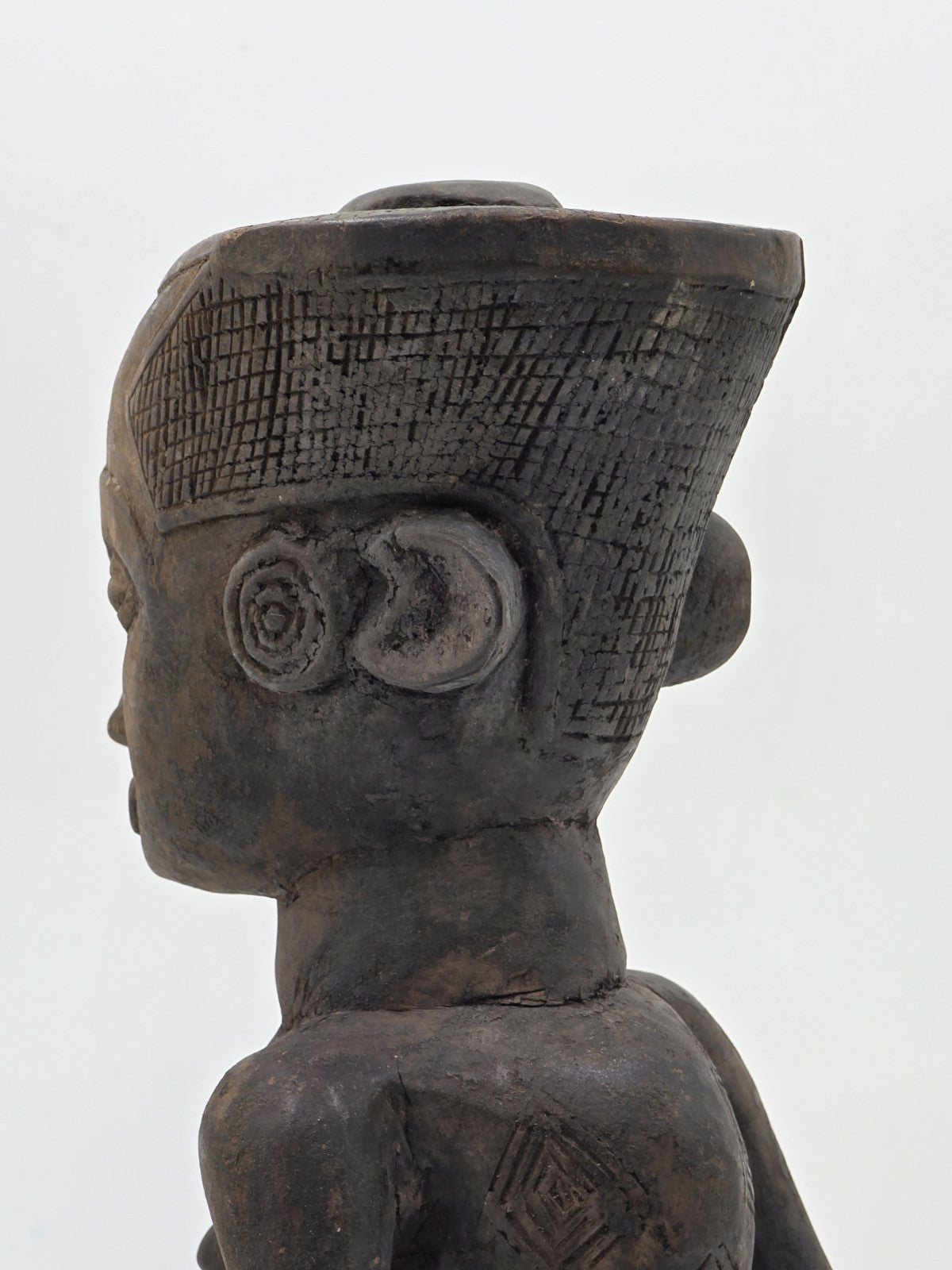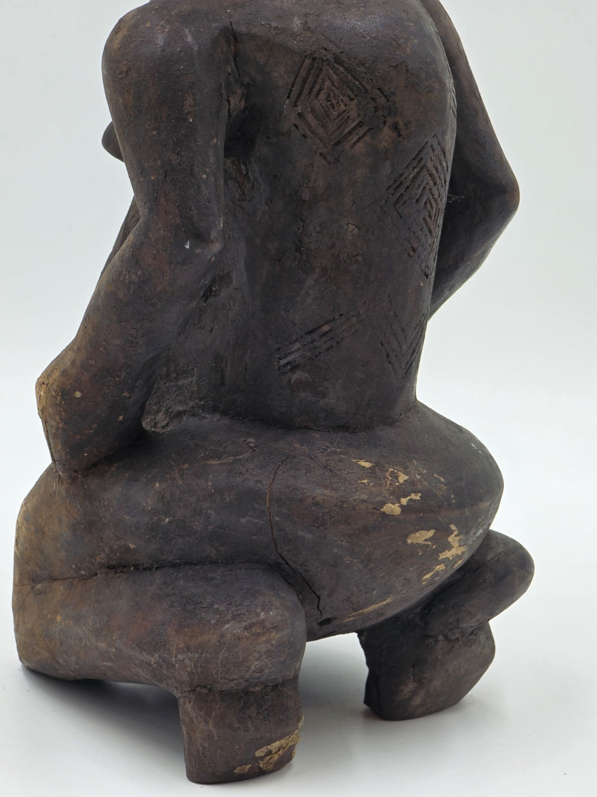 xThis rare 1930's African Luba Fertility Tribal Figure is a unique and handmade sculpture from Congo, The Democratic Republic of the. The piece showcases the intricate craftsmanship and cultural significance of African art, specifically the Luba tribe's beliefs in fertility and tribal traditions. The detailed carving and design of this sculpture make it a valuable and culturally important collectible for those interested in African cultures and ethnicities.