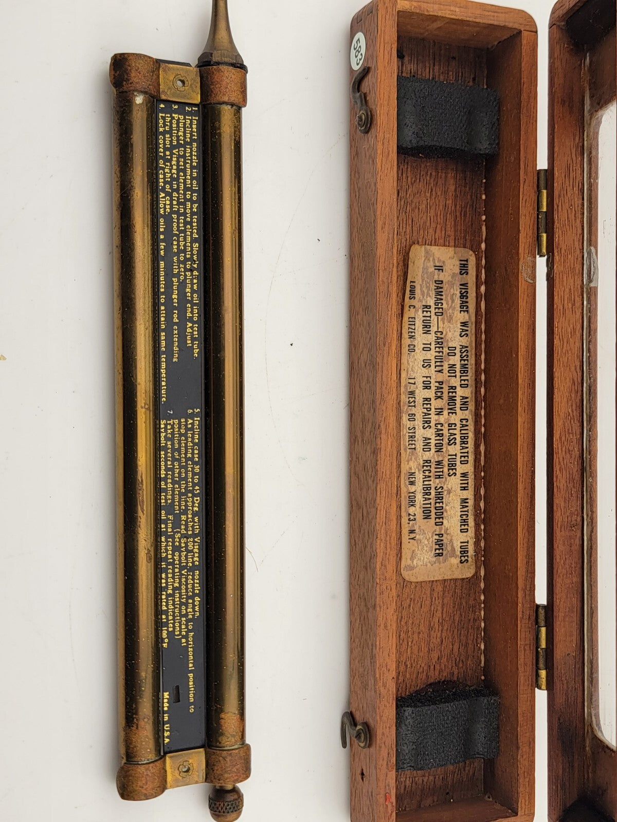 xThis rare antique Louis Eitzen Visgage Oil Viscosity Comparator Instrument comes with a case and is a true gem for collectors of vintage science equipment. Made in the United States, this instrument is a must-have for those interested in the history of science and medicine.