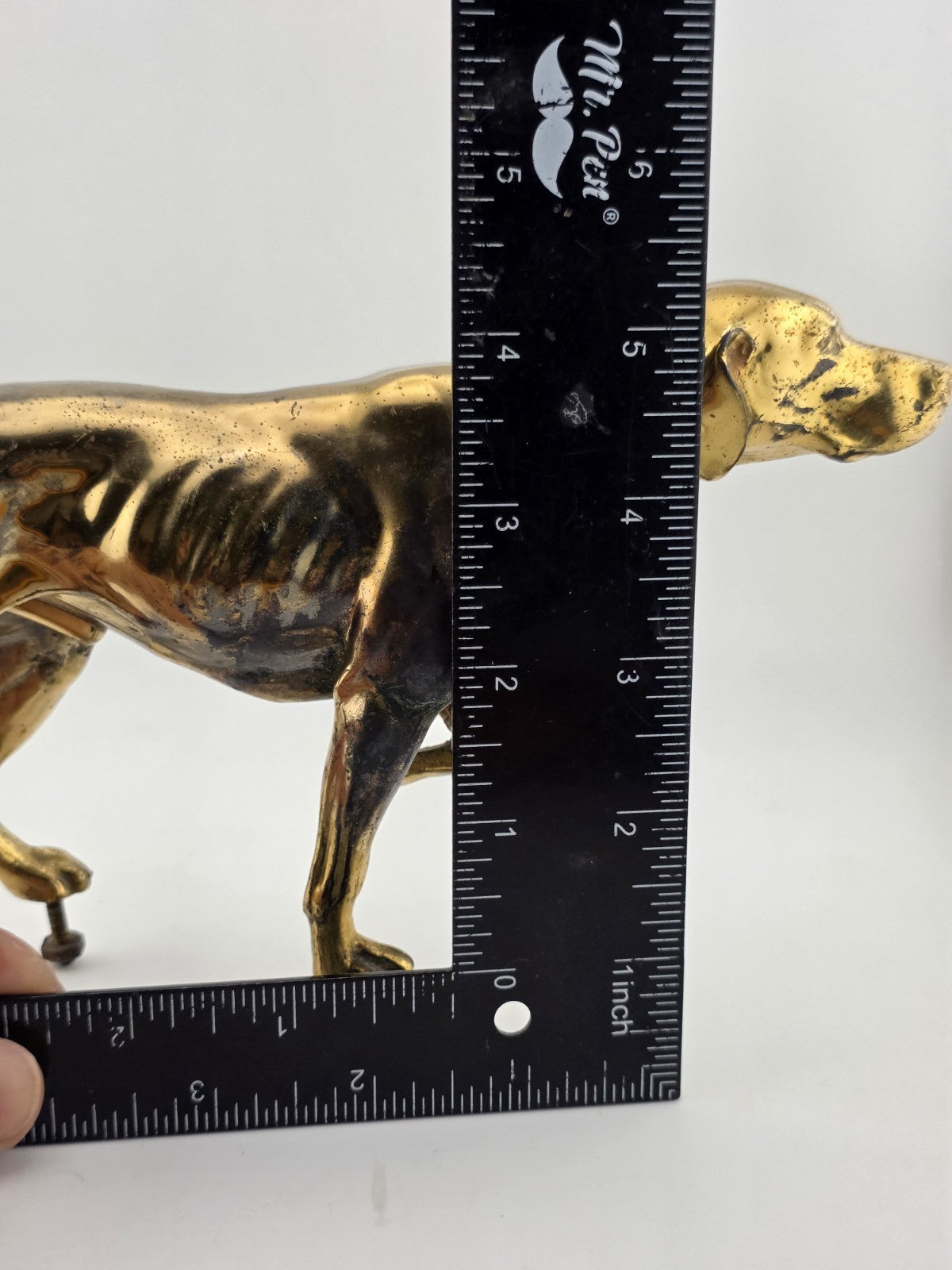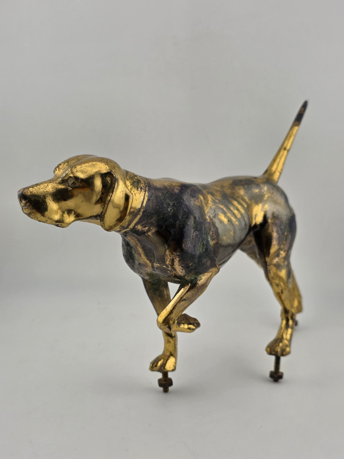 xThis rare antique Victorian brass pointer dog clock topper is a unique and vintage decorative piece perfect for mantel clocks. Made of brass with an original finish, this clock topper showcases the intricate craftsmanship of the 19th century. Featuring a pointer dog design, this piece adds a touch of elegance and charm to any clock or mantel. A true collectible item for those who appreciate fine antiques and vintage decor.