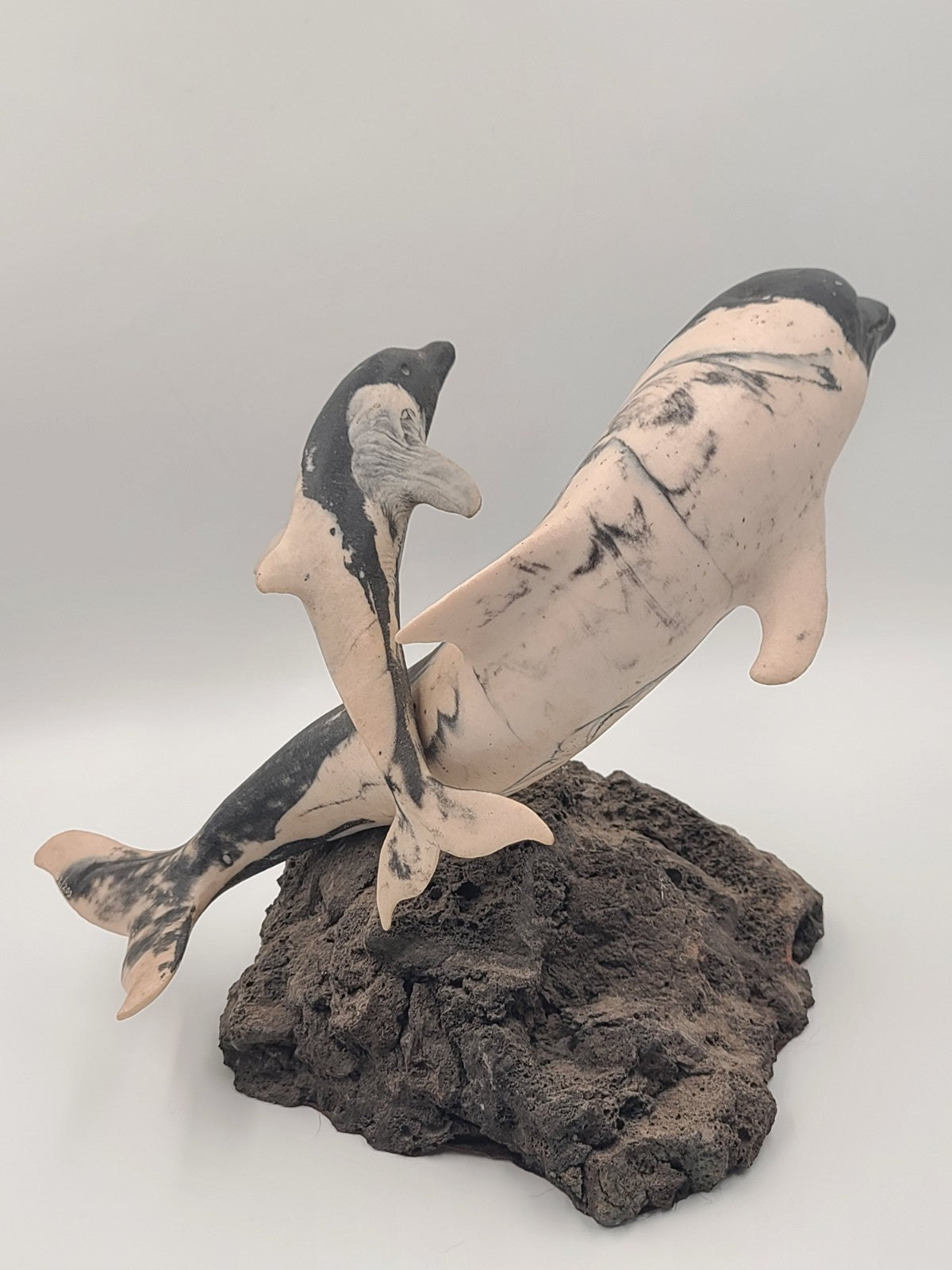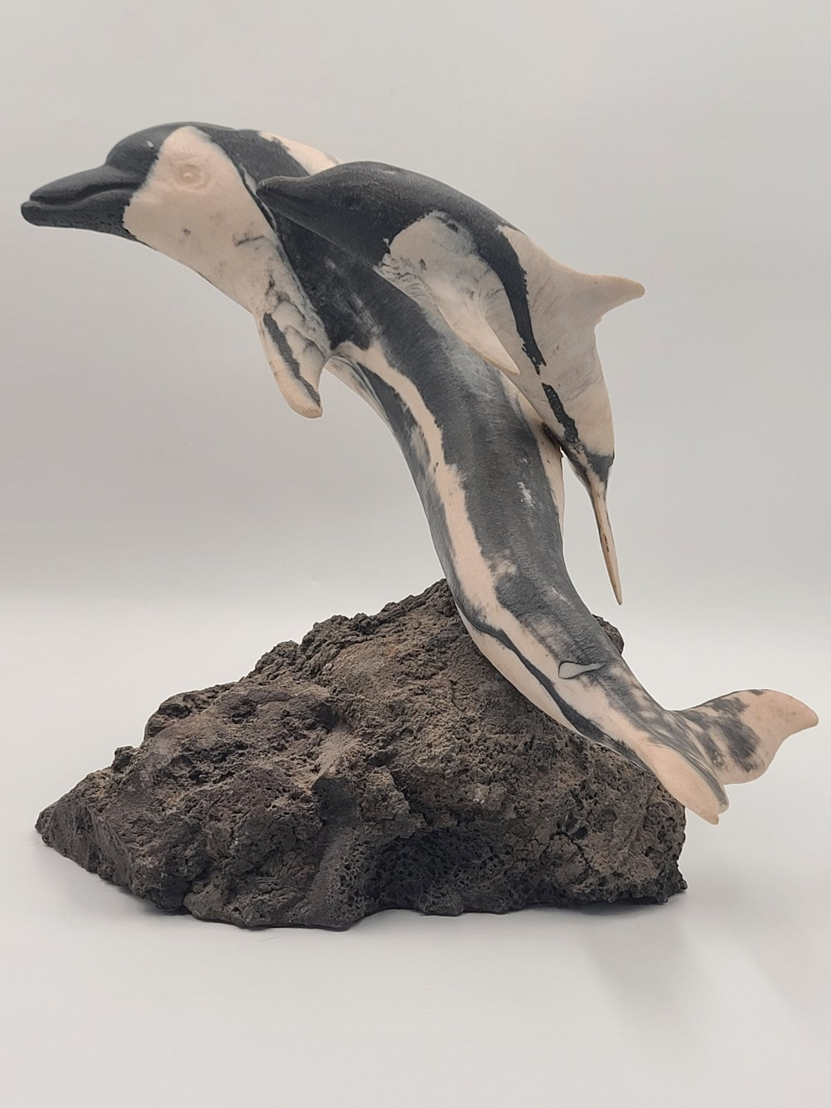 xThis rare large signed NLW Ltd Edition Stone Dolphin Sculpture #132/200 is a beautifully crafted piece that showcases the intricate artistry of a handmade sculpture. Made from stone in the United States, this sculpture features a dolphin as its central theme, adding a touch of elegance and marine beauty to any collection. Standing on a lava base, this limited edition piece is a unique and substantial addition to any art or collectibles display.