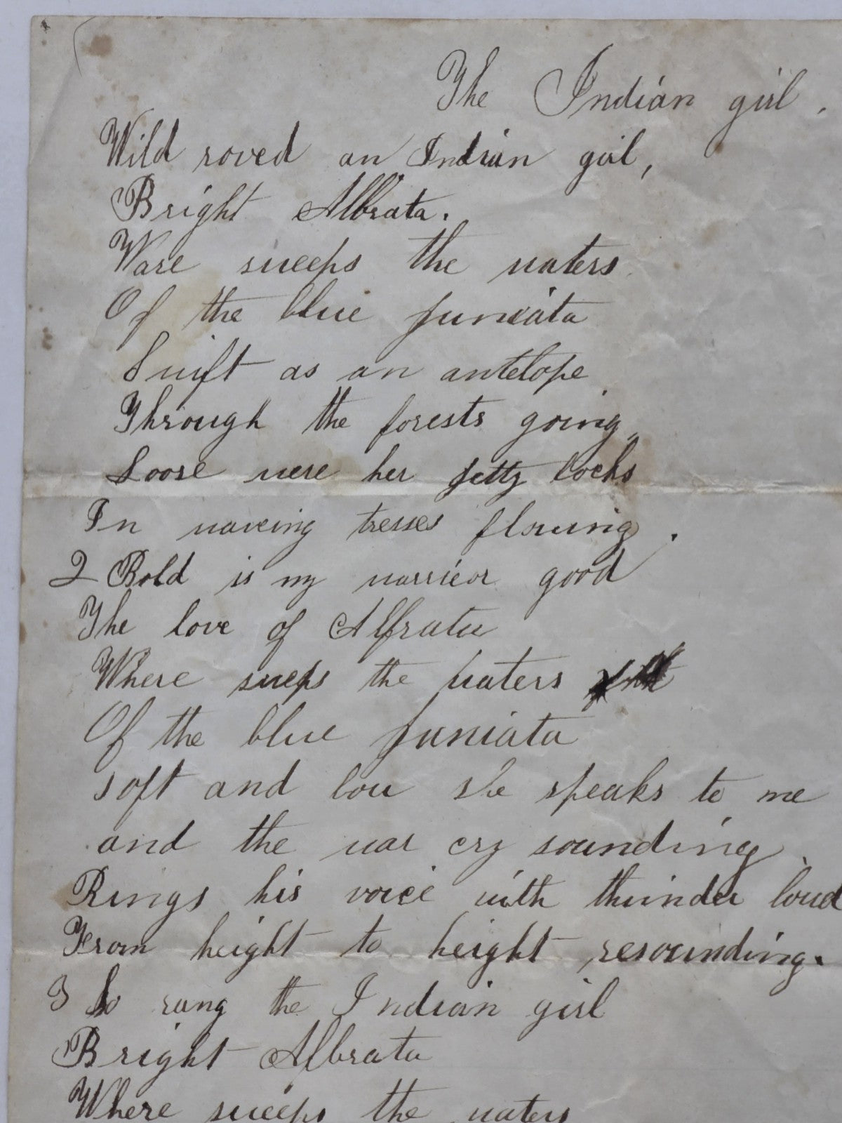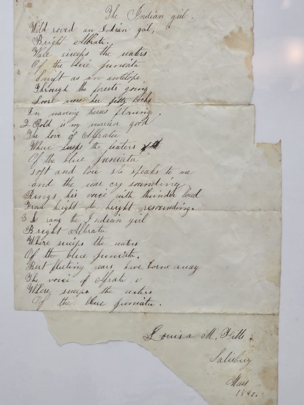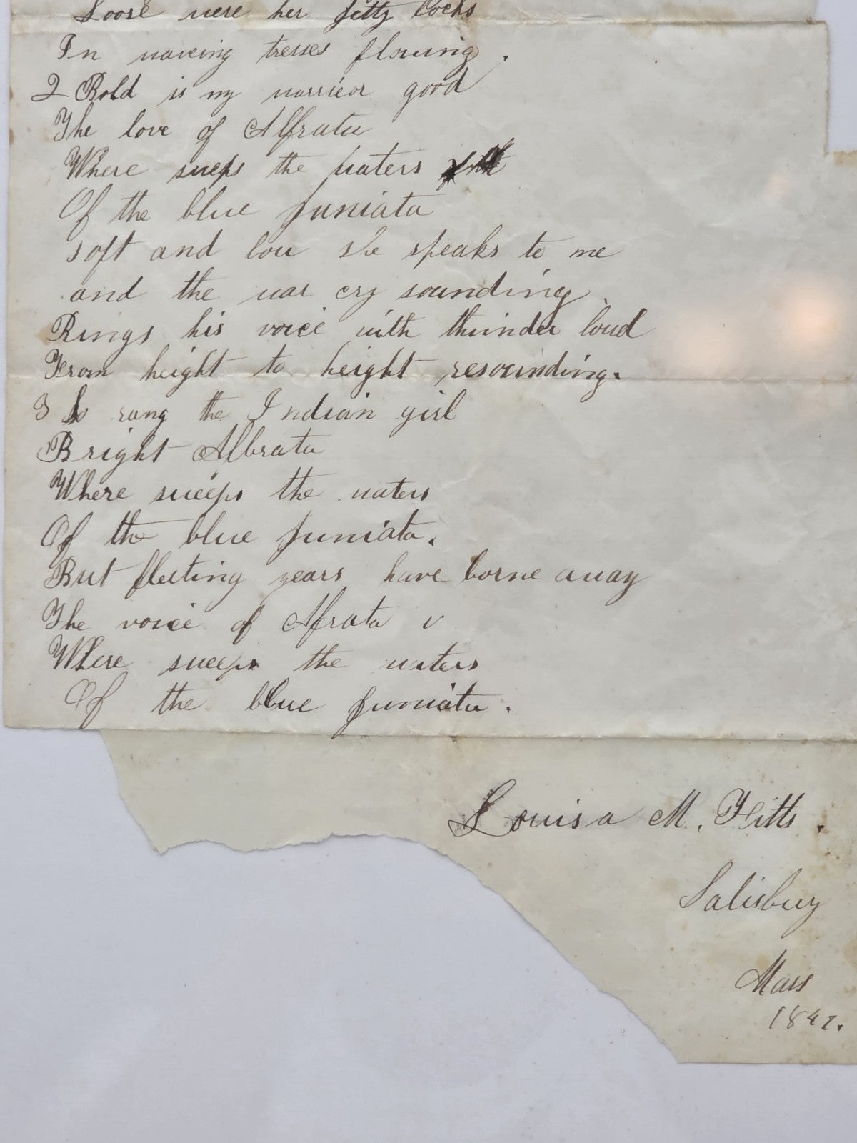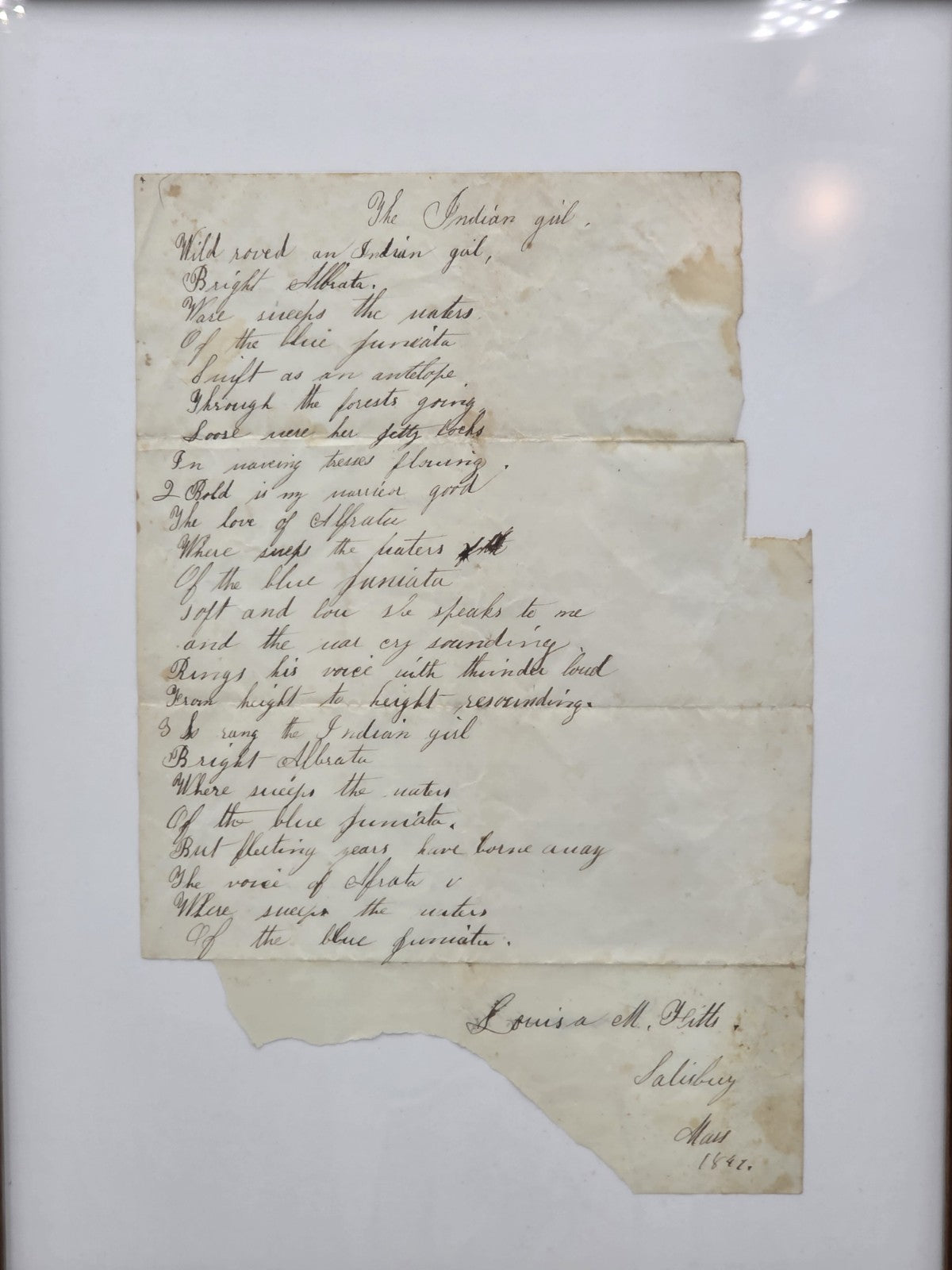 xThis product is a rare and unique 1847 handwritten poem titled "The Indian Girl" signed by the author, Salisbury Massachusetts. The poem is a one-of-a-kind (OOAK) piece that showcases the history and culture of the United States during the 19th century. It is a valuable collectible item for those interested in historical documents and poetry from that era.