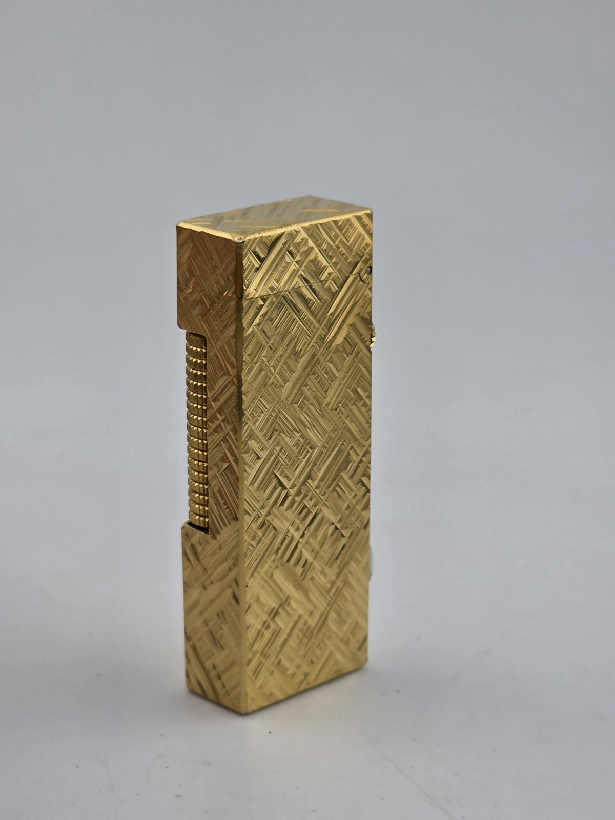 xThe product is a rare vintage Dunhill Rollagas gold tone textured lighter from Switzerland. Known for its quality craftsmanship and sleek design, Dunhill is a prestigious brand in the world of lighters. This particular model is textured with a gold tone finish, adding an elegant touch to any collection of vintage lighters. Made in Switzerland, it ensures precision and reliability in its functionality, making it a sought-after item for collectors and enthusiasts alike.