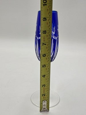 xThe product is a pair of vintage Ajka Rene cobalt blue cut to clear crystal champagne flutes with an etched pattern. These rare champagne glasses are from the 1970s and were crafted in a studio. The cobalt blue color, crystal material, and intricate etched designs make them a unique and elegant addition to any drinkware collection. Perfect for all occasions, these champagne flutes are a true vintage find for collectors and those looking to add a touch of old-world charm to their home.
