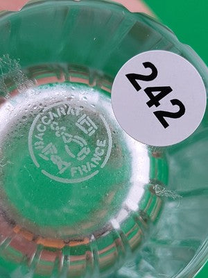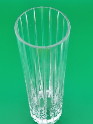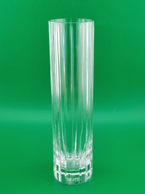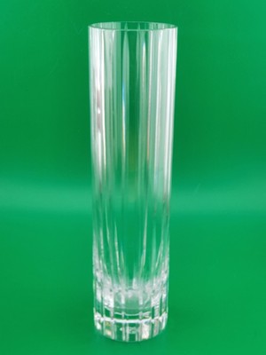 xThe Vintage Baccarat Crystal HARMONIE Vertical Cuts Cylinder Flower Vase is a stunning piece of French craftsmanship, standing at 7 inches tall. Featuring the iconic Harmonie pattern and signed by Baccarat, this clear crystal vase showcases intricate vertical cuts and a beautiful floral design. Made in France in a Mid-Century Modern style, this original art glass piece is sure to add a touch of elegance and sophistication to any space. Perfect for displaying flowers or as a decorative statement on its own, this vase is a timeless and exquisite addition to any collection.
