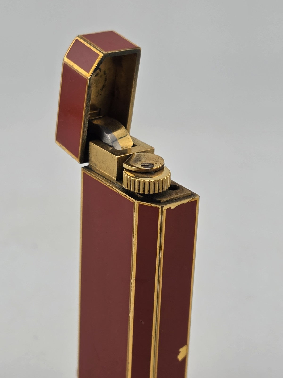 xThe product is a vintage Cartier ''Must de Cartier'' red gas lighter, known as the ''Laque-de-Chine'' model. This collectible lighter is in working condition, making it a desirable item for those who appreciate fine craftsmanship and classic design. The red color adds a touch of elegance to the piece, making it a stylish and functional addition to any collection.